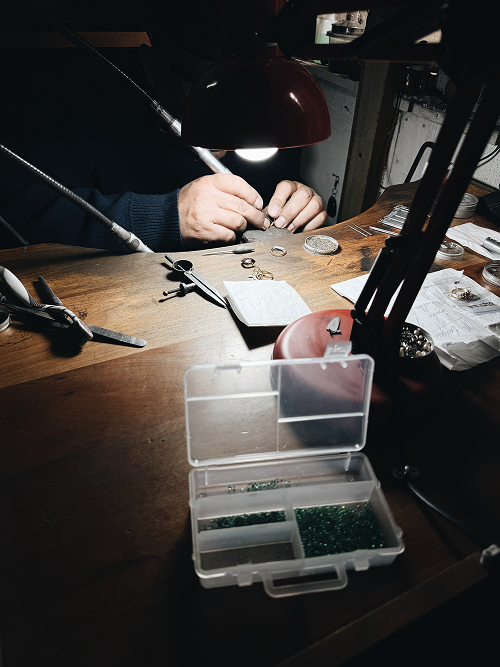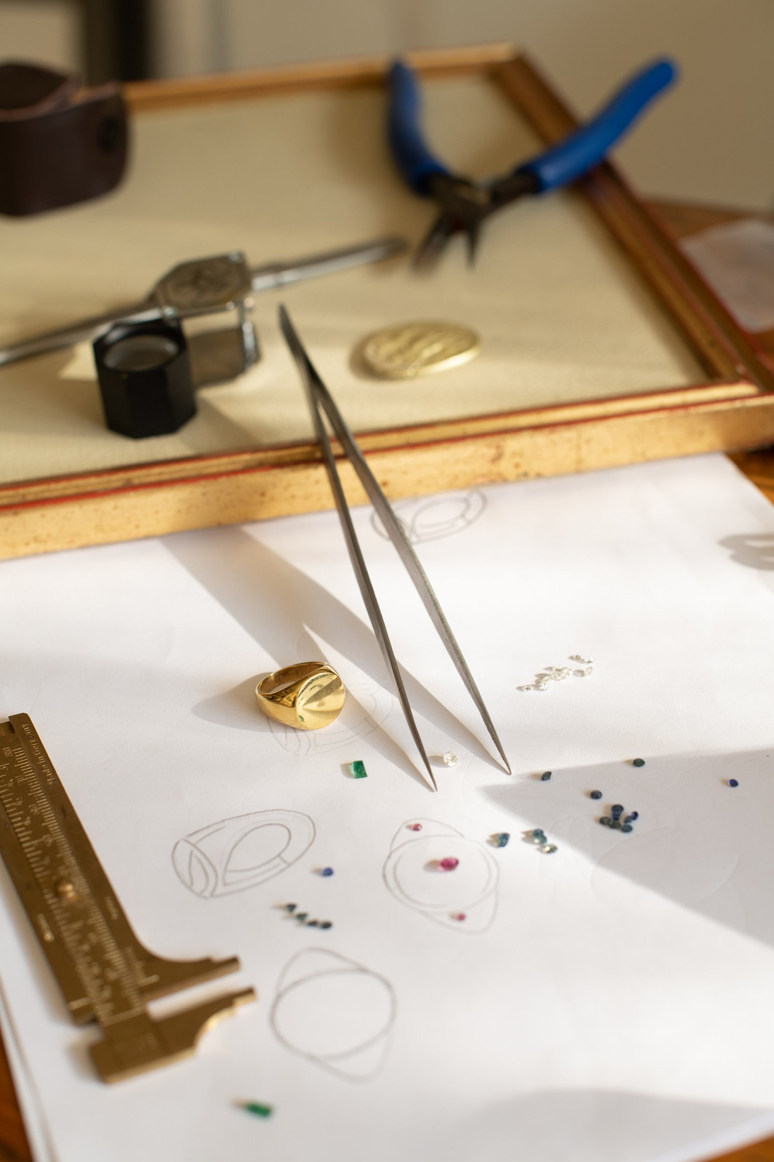 Partimos de tus símbolos más importantes —escudos familiares, iniciales, piedras con valor emocional o grabados únicos— y los transformamos en una pieza creada a mano, con materiales nobles y certificados, respaldada por nuestra formación en el Gemological Institute of America (GIA).